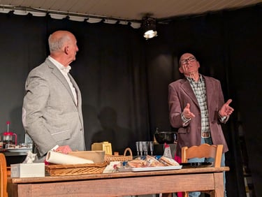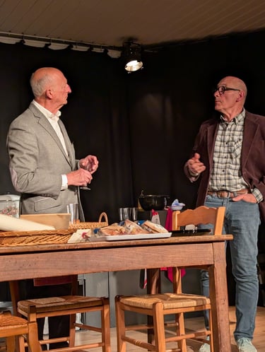 CUISINE ET DEPENDANCES (Auteurs : JAOUI/BACRI) : Le dîner organisé ce soir-là par Jacques et Martine devait être un événement, il sera une succession de petits drames pour finir en coup de théâtre. Le retard de deux heures du principal invité et de sa femme, le haddock trop salé, la misanthropie constante de Georges, l'interminable partie de poker en fin de repas, tout est fait pour survolter les uns et lasser les autres.